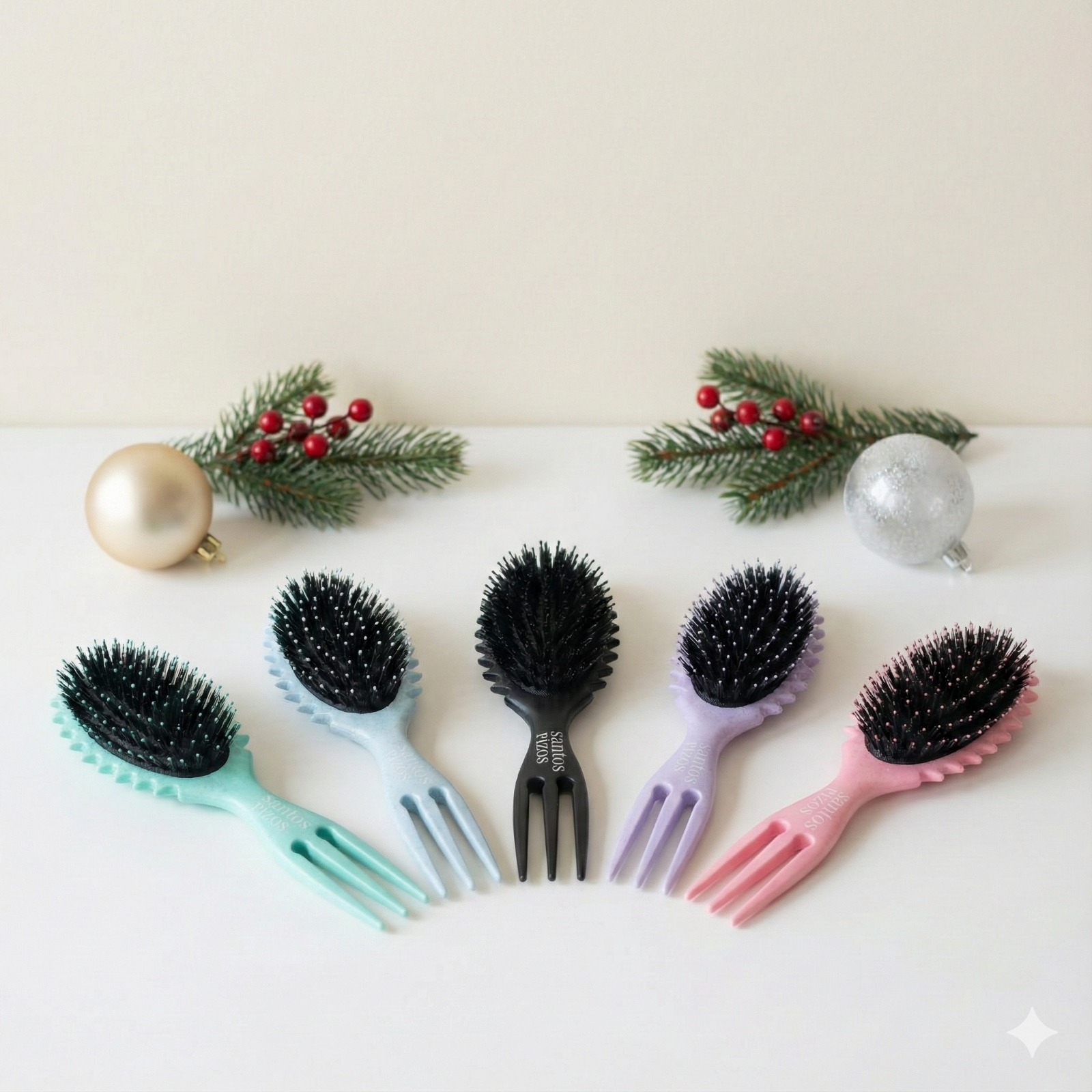 Diseñado para cabellos ondulados y rizados (2A a 3B), combina púas suaves que desenredan sin maltratar y un mango tipo trinche que eleva y separa los rizos sin romper su forma.